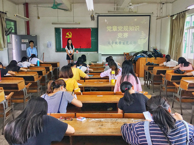 新学期伊始,为迎接十九大的召开,扎实推进“两学一做”学习教育制度化、常态化,进一步提升党章意识,牢记党规党纪,充分检验学生党员“两学一做”学习成效。9月13日,我院学生党支部在田师605开展党章党规知识竞赛活动。该院学生党支部书记、学生党员及入党积极分子约50人参加了活动。