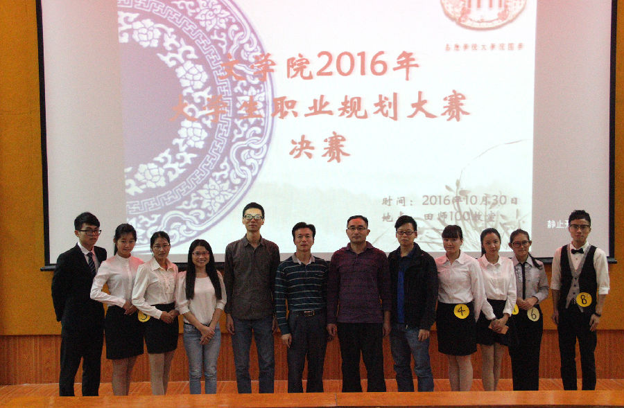 10月30 日下午,yl6809永利集团2016年大学生职业规划大赛决赛在田师100举行。比赛邀请教务处实践科杨仕立科长、招生就业处王涛科长及yl6809永利集团三位辅导员老师担任评委。