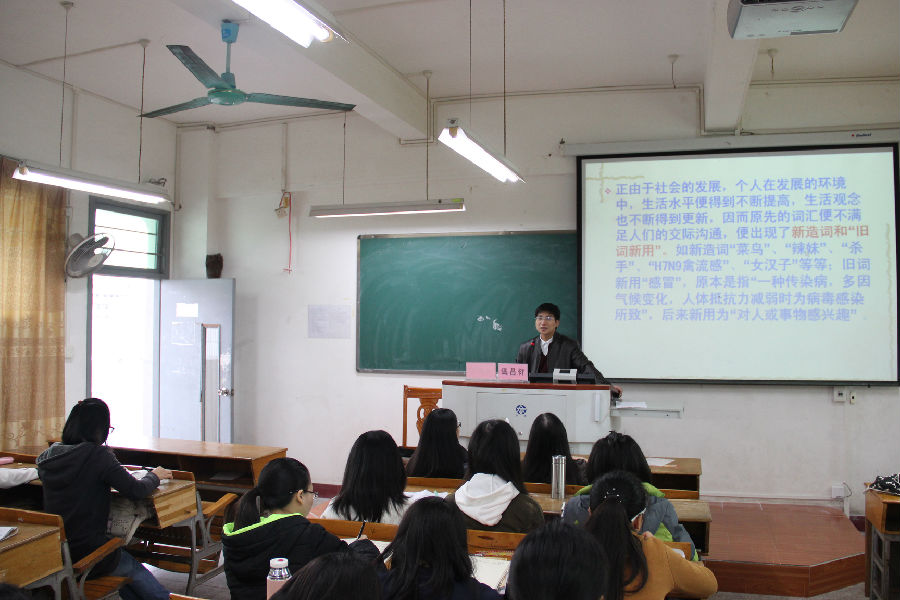 2015年12月11日下午,我院副院长温昌衍教授在田师612为汉语言专业学生作题为“现代汉语新词语——兼谈新术语的规范问题”的专题学术讲座。