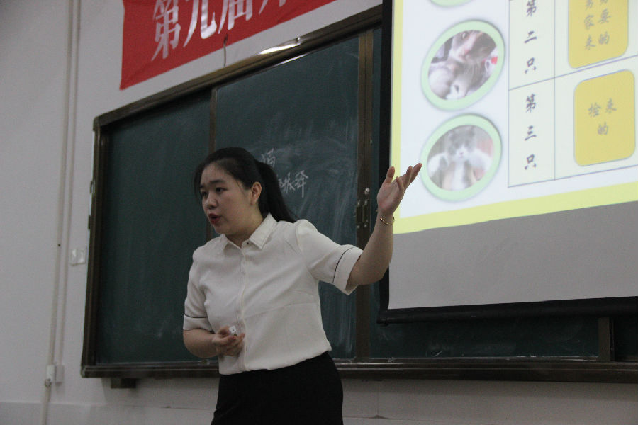 本次比赛共有17名选手参加,第一次采取征集17级、18级学生作为模拟学生的比赛形式。在比赛中,选手们分别从教学目标、教学设计及教学方法等方面入手,充分激发了模拟学生的学习兴趣,为评委老师和观众们展现她们的技能和自信。选手们语言表达准确、教学目标明确,教学思路清晰,充分展示了师范生的语言表达能力和教学能力。经过角逐,比赛最终评选出涂芬芬、钟佳家和陈科君三名选手报送参加第七届广东省本科高校师范技能大赛。