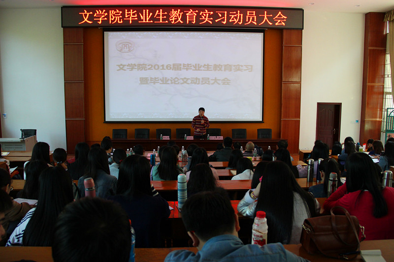 10月14日上午8点30分,yl6809永利集团2016届毕业生教育实习暨毕业论文动员大会在田师100举行。李保民书记,曾令存院长,陈红旗副院长以及毕业班师生出席了会议。