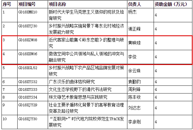 近日,2018年度省哲学社会科学规划学科共建项目已立项公示,我校有10个项目获得立项资助, 其中我院有2项获得资助,具体名单如下:
