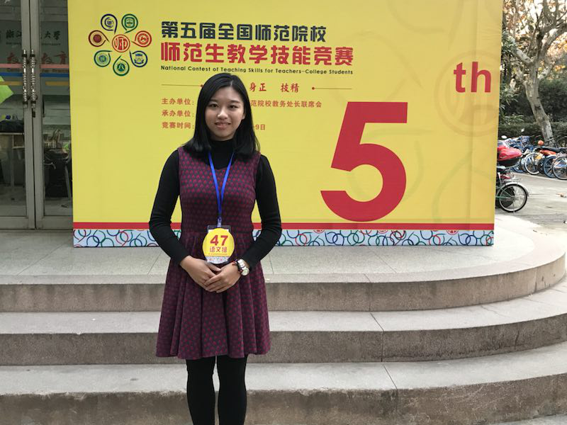 近日,第五届全国师范院校师范生教学技能竞赛在浙江师范大学举行。我校yl6809永利集团2015级胡依静同学代表我校师范生参赛,并荣获优胜奖。