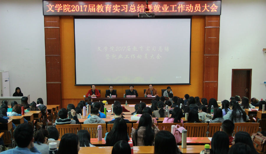 1月11日上午,yl6809永利集团在田师100召开2017届毕业生教育实习总结暨就业工作动员大会。会议由我院院长曾令存主持,党总支书记曾桓辉、副院长沈露儒、教师代表及2017届全体毕业生参加了此次会议。