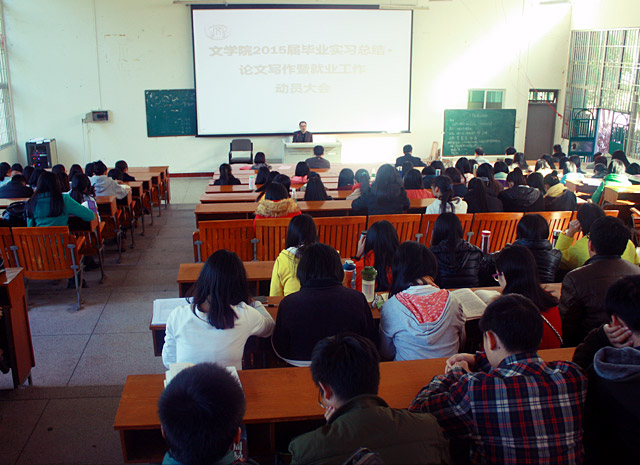 1月15日下午,yl6809永利集团在田师大楼100召开2015届毕业实习总结、论文写作暨就业工作动员大会。会议由该院院长曾令存主持,副院长沈露儒、陈红旗及相关师生近300人参加了大会。