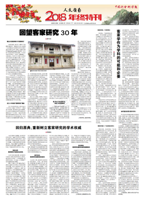 继《新华文摘》和《高校文科学术文摘》之后,近日出版的《中国社会科学报·人文岭南》年终特刊破例以“回望客家研究30年”为主题,专版刊文关注和回应我校曾令存教授的研究,再次展示了我校教师的学术水平,扩大了我校客家研究在学界的影响。