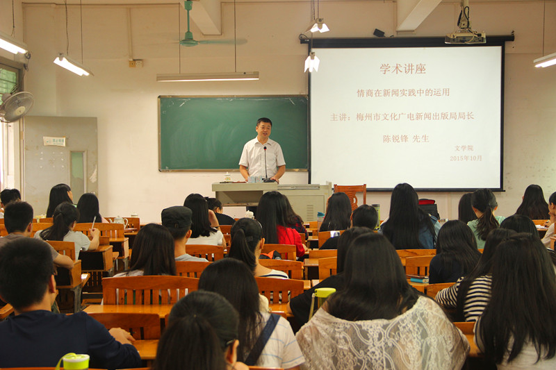 为加强新闻学专业学生的综合素质,提高应用型人才的培养质量,我院本学年将组织相关系列专题讲座,由梅州市文化广电新闻出版局局长、我校兼职教授陈锐锋先生主讲。