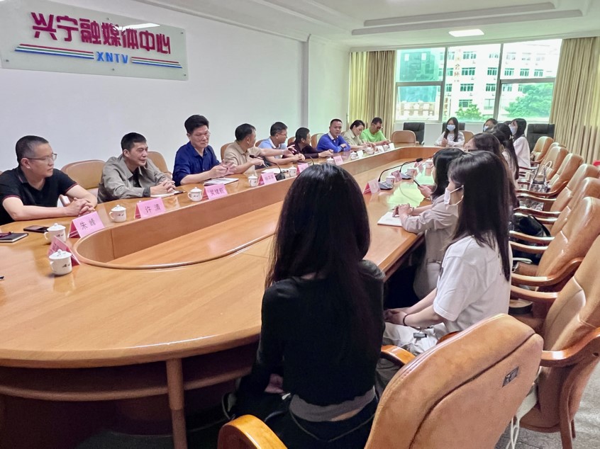 4月12日,我院新闻与写作教研室主任周高琴、教授由笛、教师张缘、张美婷以及温嘉瑜组织2020级新闻学专业部分学生前往兴宁市融媒体中心开展访企拓岗活动。兴宁市融媒体中心台长陈云与各部门负责人对我院师生一行的到来表示热烈欢迎。