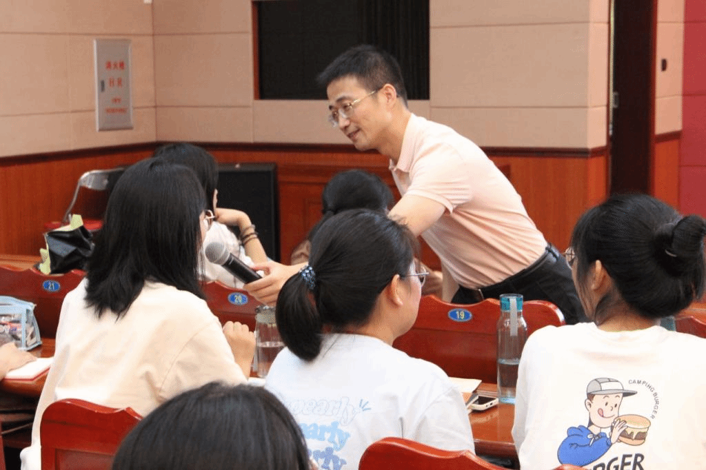 在讲座中,张华教授用“同学们是否见过光”这个问题引出本次讲座的主题——让我们成长为“光”。他为同学们解释了光的含义,表示语言是教师的光亮、光彩、光芒,一位教师优秀的语言表达能够让学生受益。