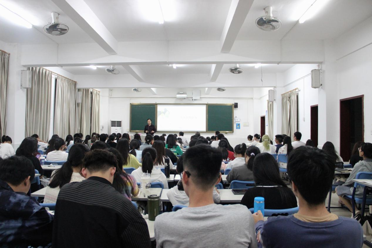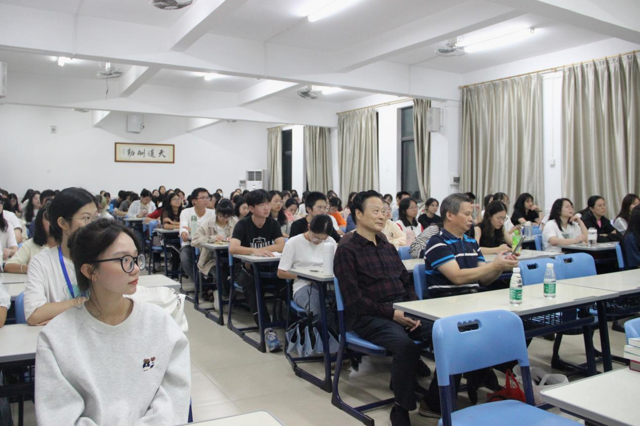 讲座接近尾声,他欢迎同学们进行提问交流,台上台下即席互动,整场讲座气氛热烈,不时响起掌声与笑声。