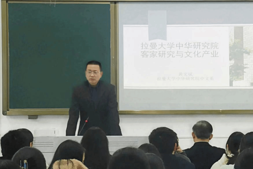 11月20日下午,马来西亚拉曼大学中华研究院副院长黄文斌应邀在百年纪念大楼511室开展以“马来西亚客家研究与客家文化产业:以拉曼大学为例”为主题的讲座。此次活动由国际交流合作处主办,我院协办。我院70余名学生参与了此次讲座。讲座由国际交流合作处处长高旭主持。