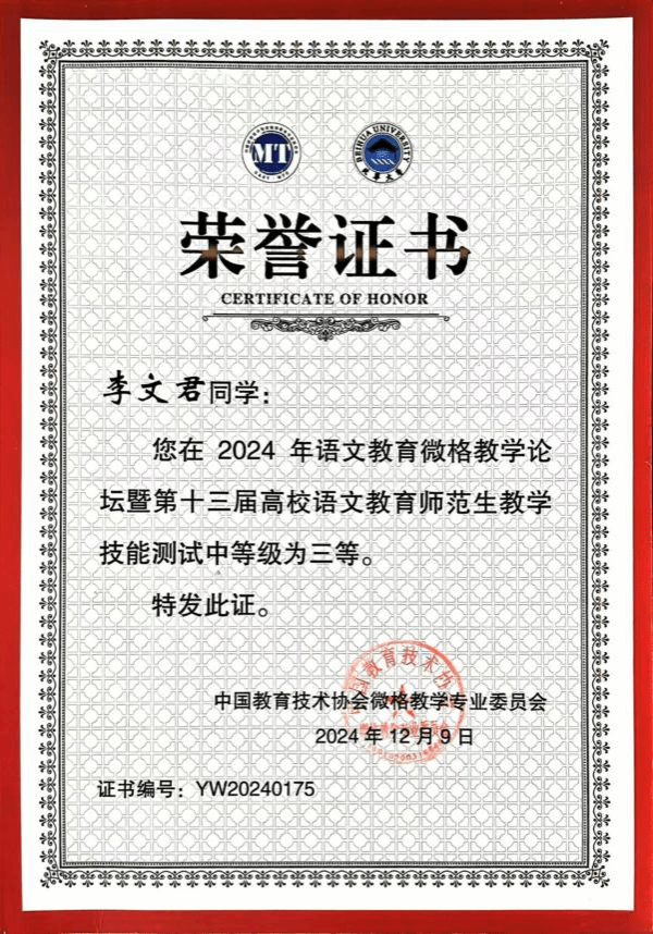 2024年12月7日—9日,由中国教育技术协会微格教学专业委员会主办、北华大学承办的2024年语文教育微格教学论坛暨第十三届高校语文教育师范生教学技能测试与交流展示活动圆满落下帷幕。