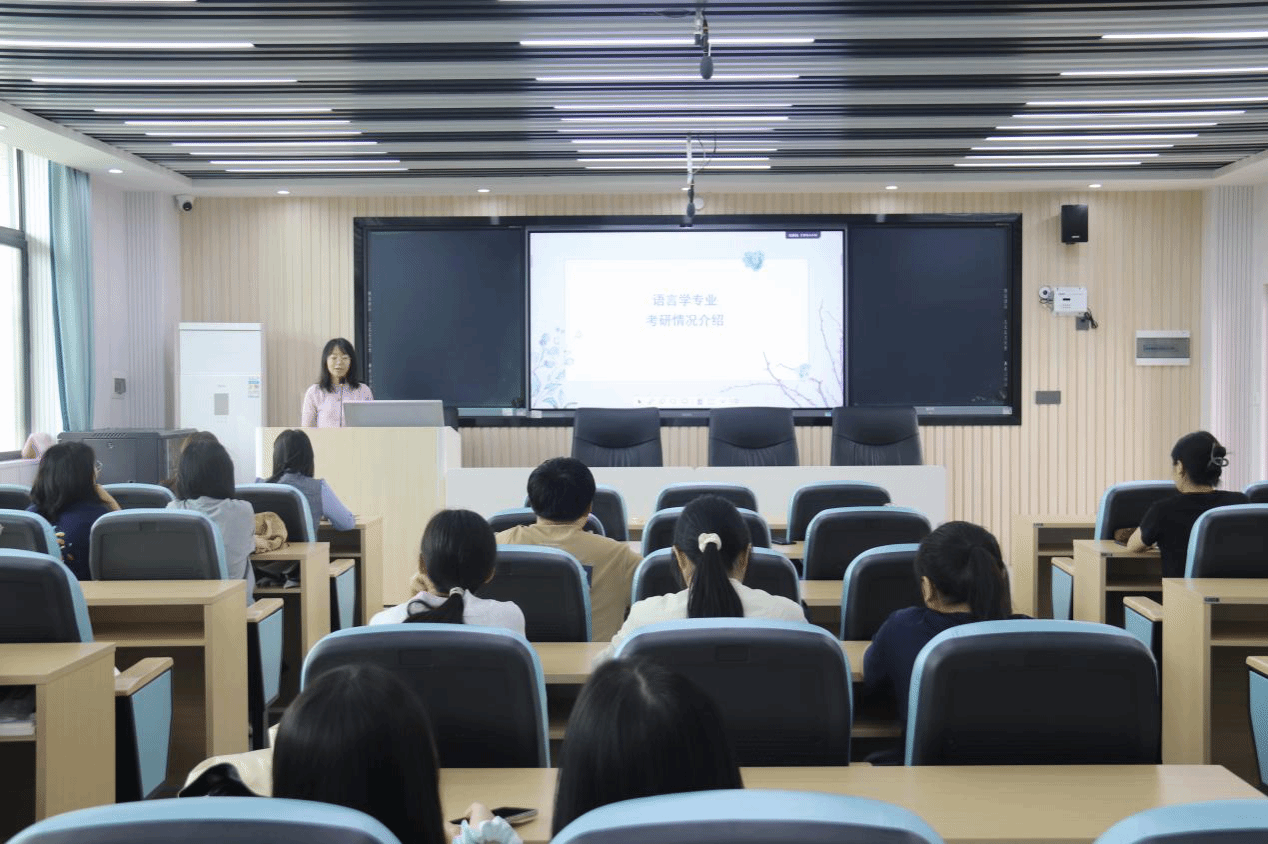 随即,侯小英介绍了语言学专业的考研情况,聚焦语言学专业考研优势,指出该专业核心考查内容主要集中于现代汉语、古代汉语及语言学概论三门课程,复习范围相对集中;还分享了往届学生考研情况,勉励大家增值自我,认真掌握专业知识,提升学习能力、思辨能力,以此获得更高的学历、更好的平台,更好地提升核心竞争力,得到更多的机会、更大的发展空间。她希望大家坚定信念、找准方向、平衡心态、持之以恒,多给自己一个机会。