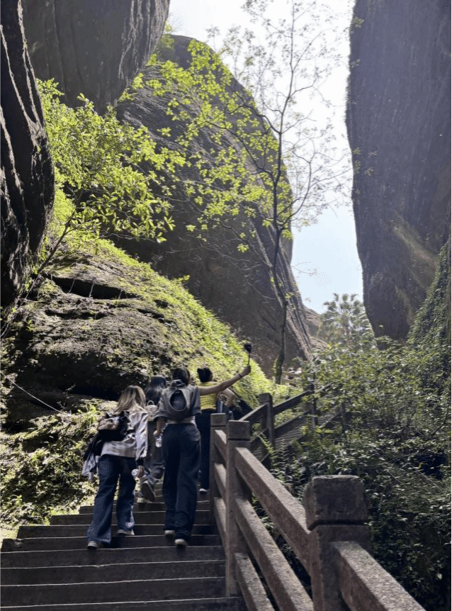 次日上午,师生们前往连城冠豸山风景区。作为国家级风景名胜区,冠豸山以“丹霞双绝”著称,其山势雄奇、湖光潋滟,此次自然景观探访不仅让同学们领略了大自然的鬼斧神工,更深刻体会到生态环境保护的重要性。在生态文明建设的新时代背景下,通过实地考察丹霞地貌,同学们对“绿水青山就是金山银山”的发展理念有了更直观的认识。