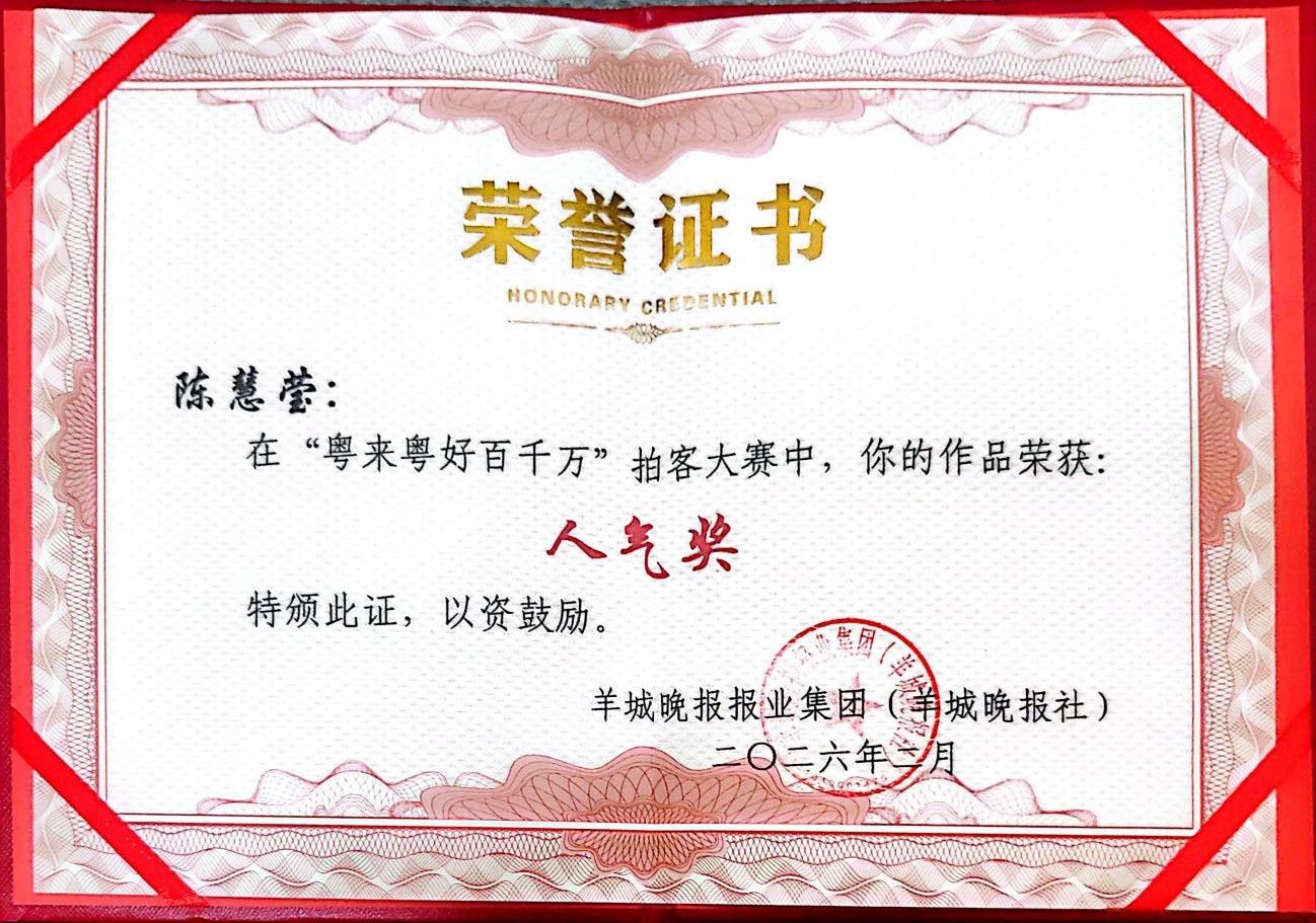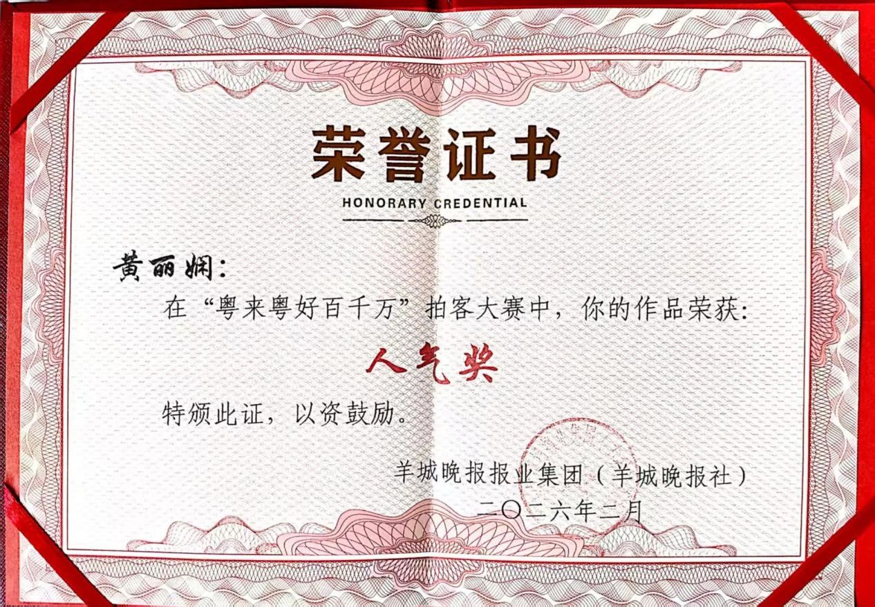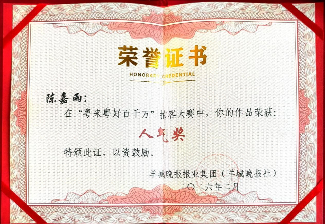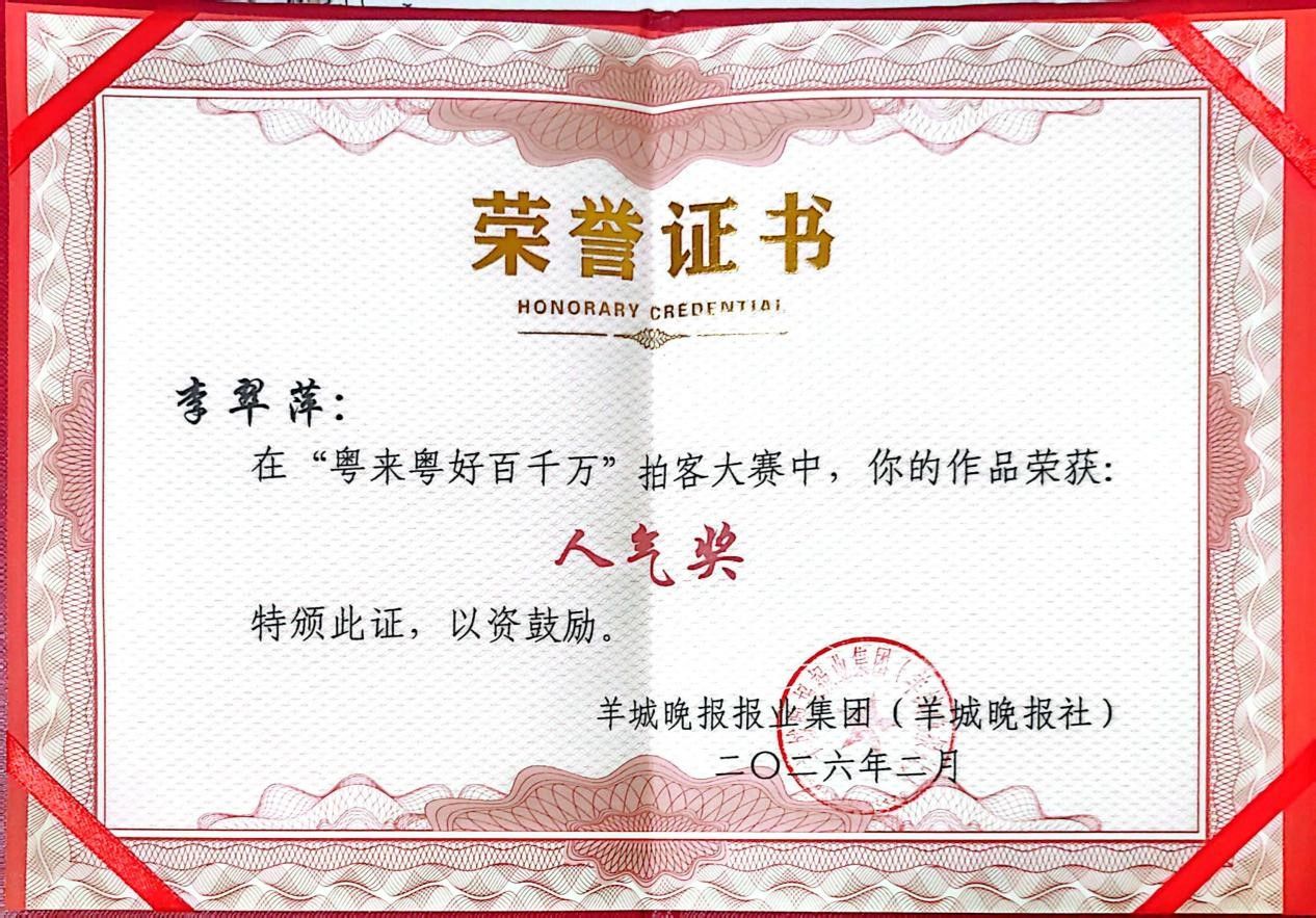 此外,在羊城晚报报业集团主办的“粤来粤好百千万”拍客大赛中,该作品获得人气奖。大赛聚焦“百千万工程”下的乡村蜕变,记录扎根土地的奋斗者、焕发新生的古村落、田间地头的创新实践以及动人的烟火日常。作品生动展现了非遗技艺在乡村的传承与变迁,从超2000件短视频作品中胜出,助力全网流量突破12.5亿。