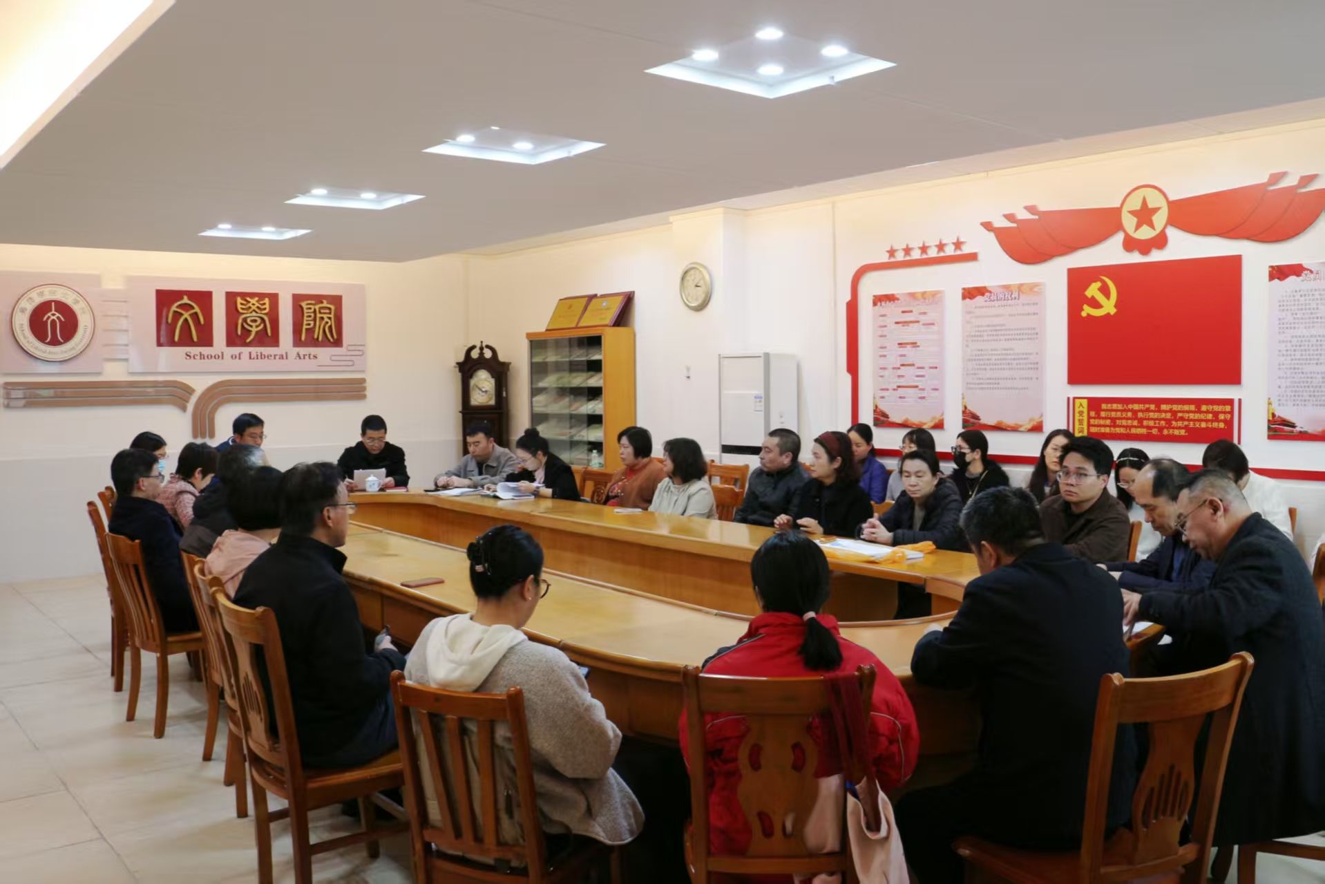 院长刘显介绍了新入职教师的基本情况,并对寒假期间坚守岗位、推进各项工作的教职工予以表扬。他传达了学校学期初教学管理与科研管理工作会议精神,明确本学期核心目标与重点任务。在教学管理上,强调要强化规范、提升质量、推进改革;在科研与经费管理上,要求规范使用、严格把关,强化专利成果转化,聚焦硕士点建设,计划于2026年启动新一轮申报。他对新学期重点工作作出部署:一要抓好日常教学,坚决杜绝教学事故;二要积极申报国家社会科学基金、教育部等高层次项目,高标准承办全国客方言暨汉语语言学术研讨会;三要加强学术交流,邀请国内外专家来院讲学指导。