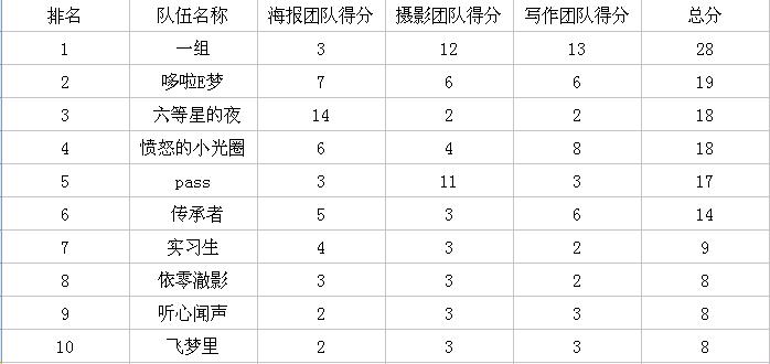 yl6809永利集团第二届新闻制作大赛共有10支队伍参加,在新闻写作环节中,新闻部共收到27份作品;在新闻摄影环节中,新闻部共收到29份作品。经评选,前十名的作品成绩公布如下: