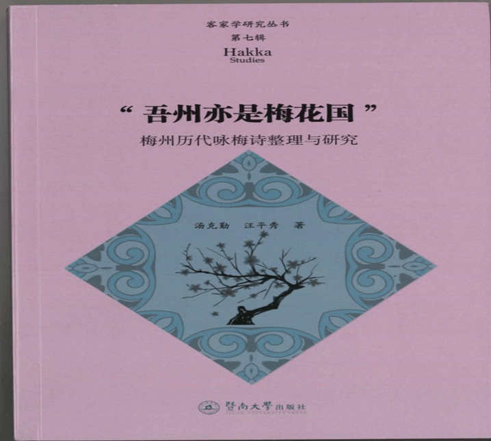汤克勤、汪平秀著《“吾州亦是梅花国”——梅州历代咏梅诗整理与研究》一书由暨南大学出版社2022年11月出版,是目前汇集梅州历代咏梅诗数量最多的著作,并作了较深入的研究。