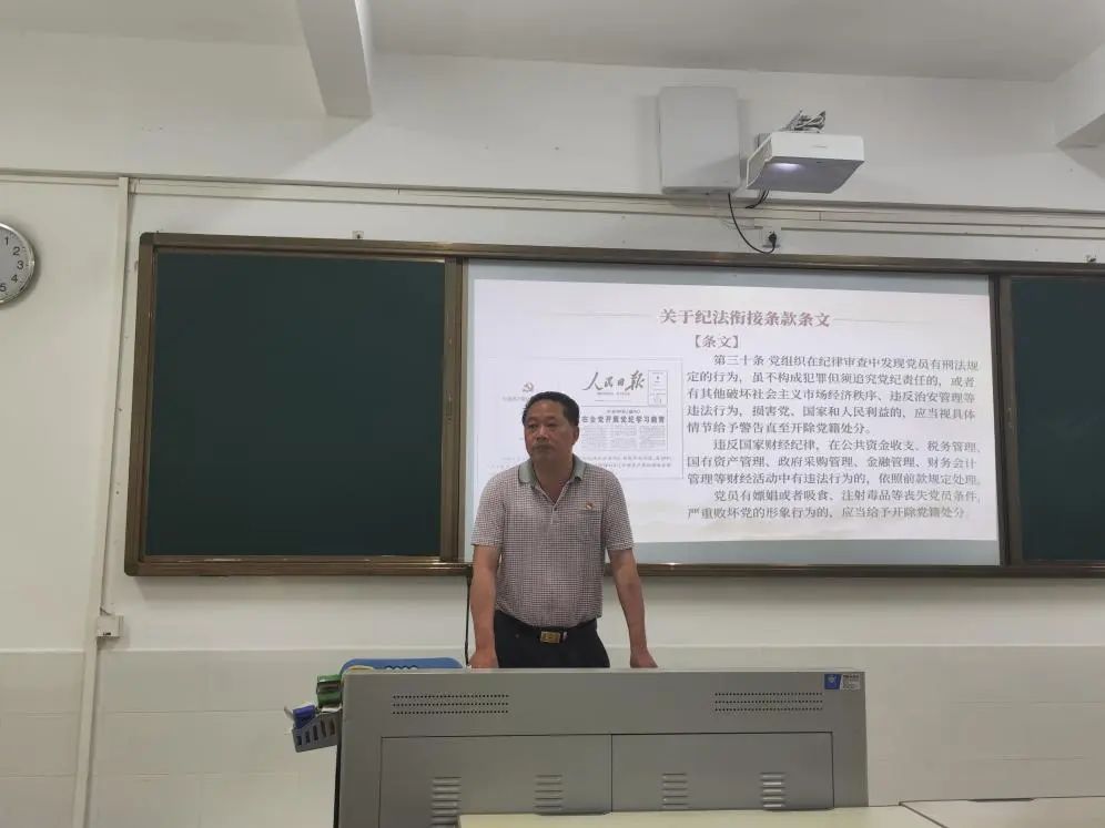 为扎实推进党纪学习教育,按照学院党纪学习教育的部署安排,近日,我院党委书记曾桓辉在百年纪念大楼313讲授党纪学习教育专题党课。我院学生党员和入党积极分子参加了党课学习。