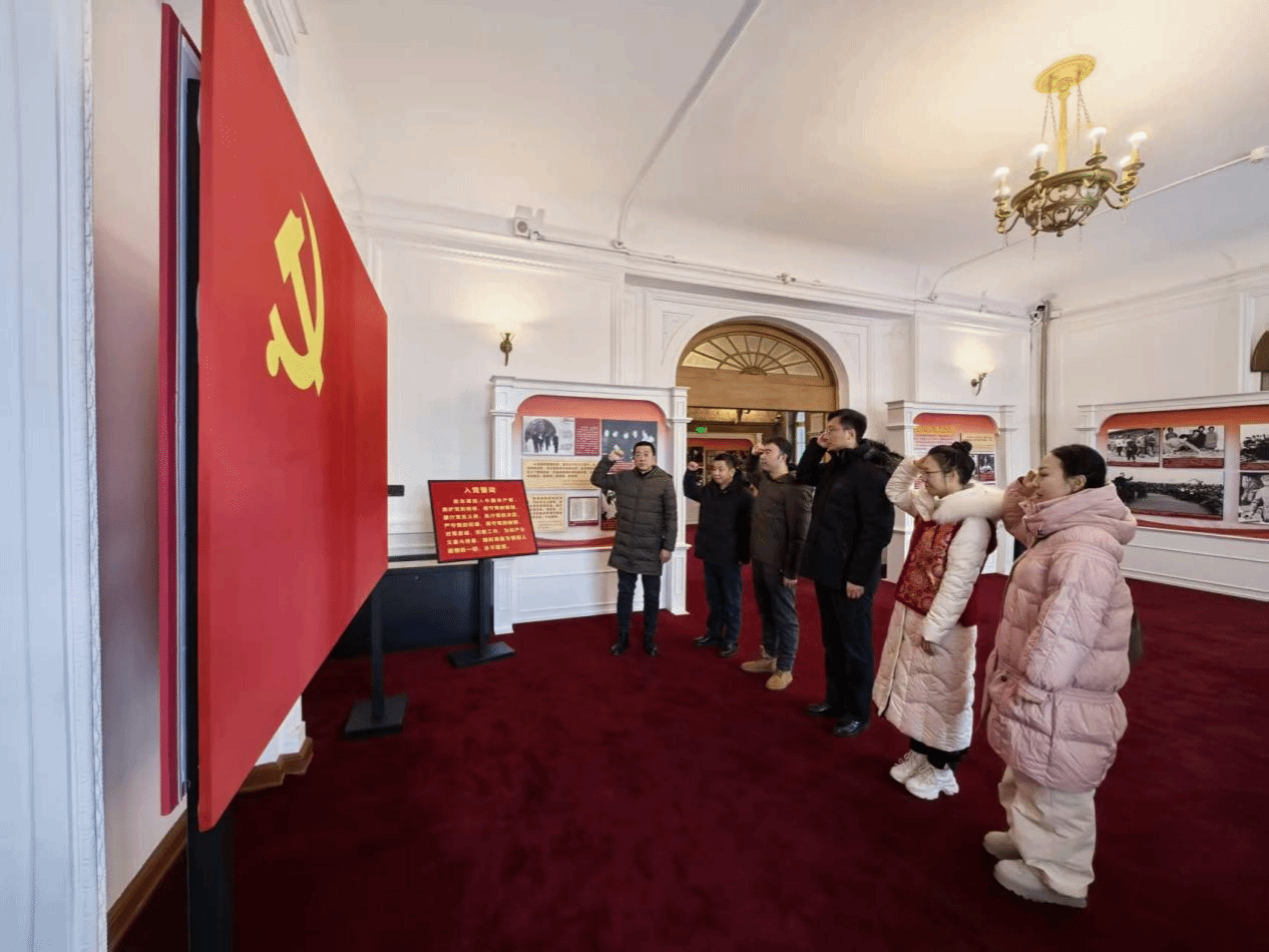革命领袖视察黑龙江纪念馆是此次党建活动的首站。该馆曾见证多位党和国家领导人视察黑龙江的重要历史时刻。党员们跟随讲解员依次参观了《党和国家领导人视察黑龙江》基本陈列及毛泽东同志视察黑龙江住址复原陈列,认真端详馆内收藏的珍贵文物、历史照片和文献资料,详细聆听领袖们深入工厂、农村、学校视察指导工作的事迹介绍。yl6809永利集团党委书记高旭带领全体党员重温入党誓词,铿锵有力的誓言回荡在纪念馆内,进一步坚定了大家不忘初心、牢记使命的信念。