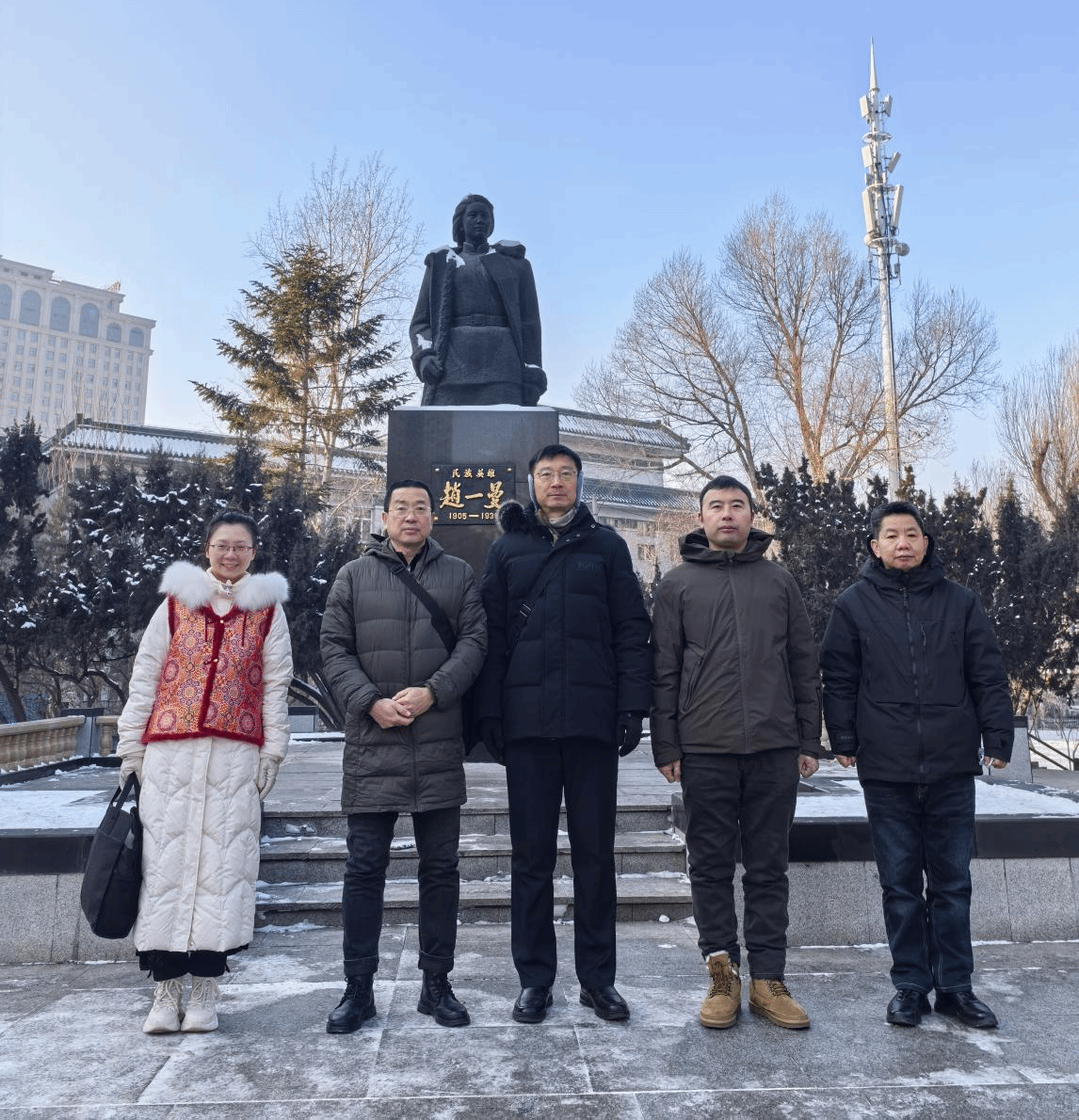 随后,高旭一行人来到以抗日民族英雄赵一曼命名的一曼街,追寻英烈足迹。这条承载着厚重革命记忆的街道,见证了赵一曼烈士在哈尔滨从事抗日斗争的峥嵘岁月。在一曼广场的赵一曼烈士塑像前,党员们庄严肃立,向英烈鞠躬致敬。